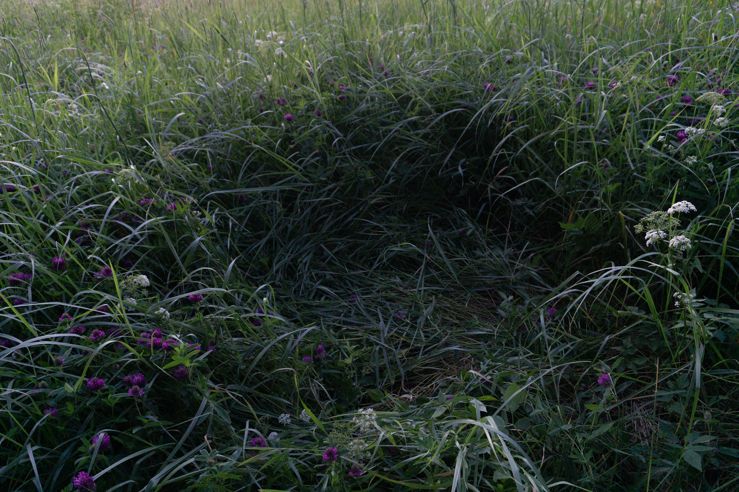 Vanishing Landscape is a work in progress—a visual and experience-based research project exploring the meadow as a living cultural space, a place where nature, humans, and knowledge passed down through generations meet. The project unfolds through long-term presence and repeated returns to a single landscape, allowing the research to develop slowly, in dialogue with the meadow’s rhythms and seasonal changes. The photographic series is being created in the Vidzeme Uplands, on Elkas Hill, which over the course of the work becomes a concrete, personally and symbolically significant site for experiencing, observing, and inhabiting the meadow.