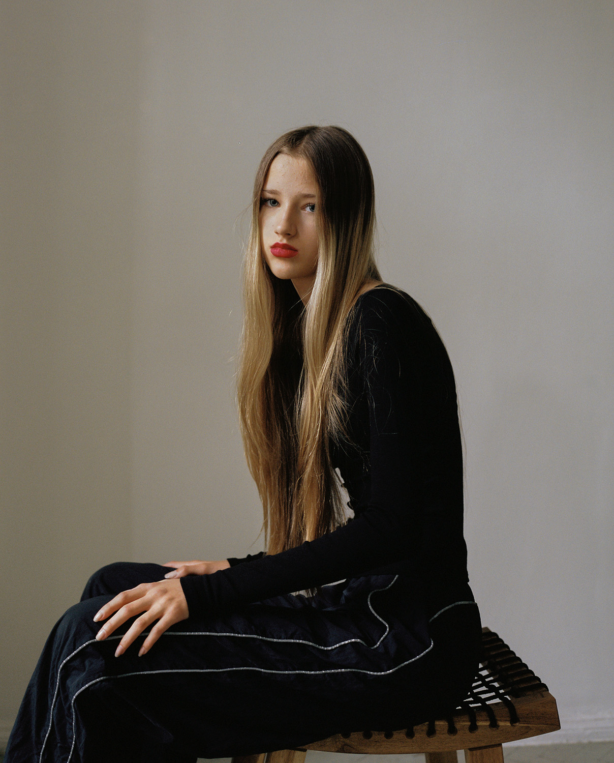 A newly recruited model’s first photographic experience in their new role is usually the so-called “test shoot”, when a photographer takes images for the model’s portfolio without a client and without payment, with the aim of creating pictures that showcase the model’s potential as broadly as possible and help them secure lucrative commissions in the future. I have worked in fashion photography for nearly fifteen years and have photographed countless model tests, both for my own portfolio and in order to realise my ideas — conceptual as well as technical. I have always been particularly interested in the first meeting, when the model — young, anxious, confused and insecure — arrives at the studio for the first time. At that moment, an experienced photographer meets a young person attempting to play the role of a model, most often without fully understanding what is expected of them, guided instead by examples seen in the media and on social networks. They look into the camera slightly stiff, holding their breath, gripping chairs with their hands, shoulders subtly raised and eyes wide with fear. This game is not fair. Yet in my project Young Beauty, I deliberately began to observe and photograph precisely their fragility, which usually remains outside the glossy facade of the fashion industry.