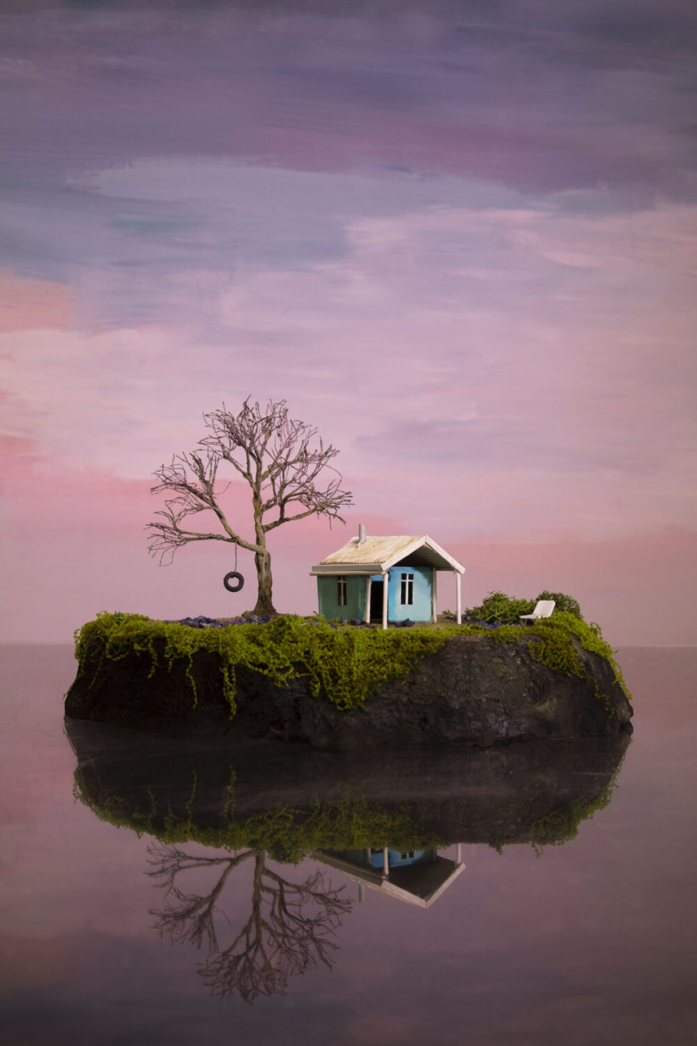 Hoogerwerf constructs her landscapes on a small scale, using everyday materials such as wood, sand, cardboard, paint, and light sources. Tiny lamps, concealed beams of light, and carefully shaped shadows do not simply illuminate the image; they lend it spatial depth and a sense of presence that extends beyond the flat surface into the surrounding space, forming an installative condition. For Hoogerwerf, photography is a means of capturing something inherently fleeting – moments in which light, form, and chance reach a fragile equilibrium. Once photographed, these worlds are dismantled and returned to fragments, leaving behind only the photograph as a quiet testimony to something that once physically existed but has now disappeared.